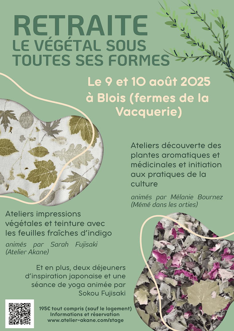 Prix de l’atelier : 55€ pour l’atelier d’environ 3h. Tout le matériel est fourni : livret explicatif, matières tinctoriales et tissus. Places limitées à 8 personnes. Aucun pré-requis nécessaire.